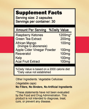 • Additional 700 total mg of African mango extract, acai berry, green tea extract, resveratrol, apple cider vinegar, and kelp as part of a unique proprietary blend
